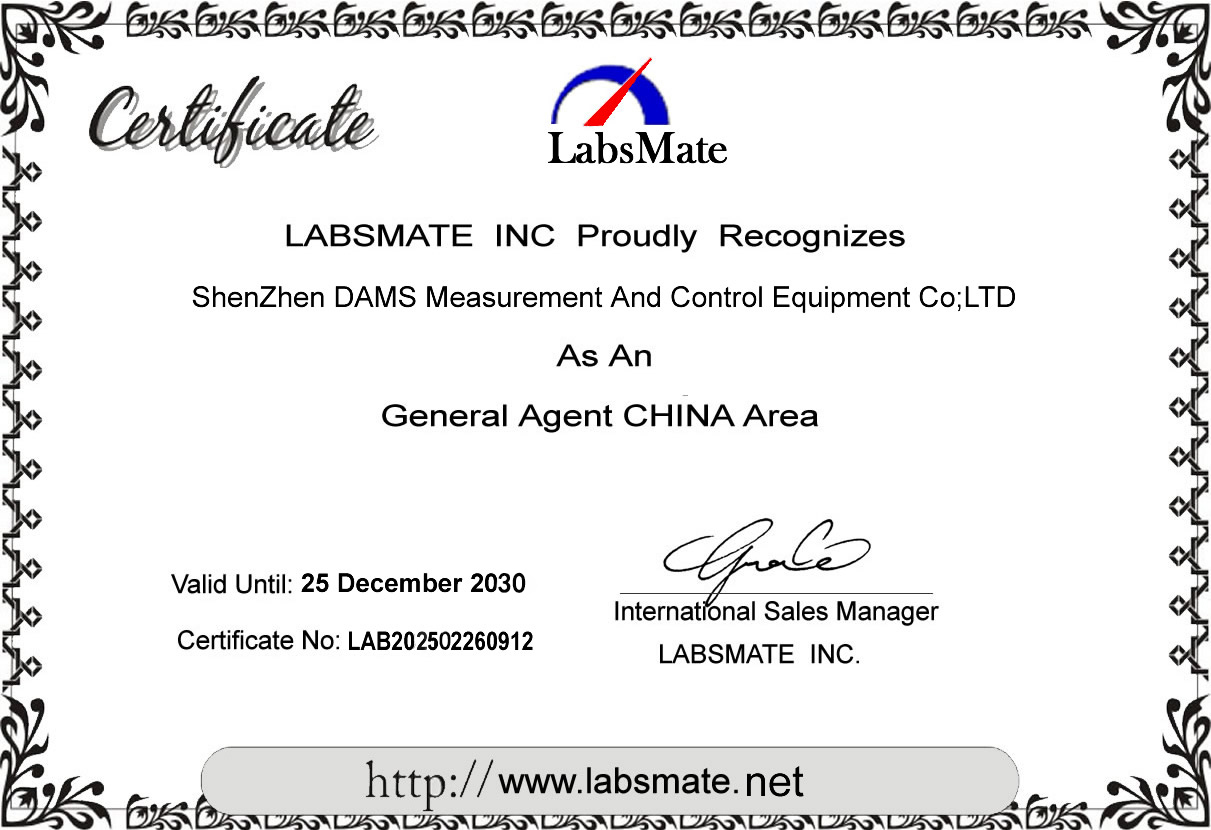 SHENZHEN DAMS Measurement And Control Equpment Co;LTD AGENT CERTIFICATE